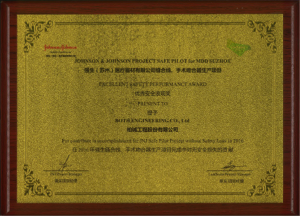 近期,公司在強(qiáng)生(蘇州)醫(yī)療器材有限公司縫合線、手術(shù)吻合器生產(chǎn)項(xiàng)目中,對(duì)無安全損失做出了貢獻(xiàn),被業(yè)主授予“優(yōu)秀安全表現(xiàn)獎(jiǎng)”。